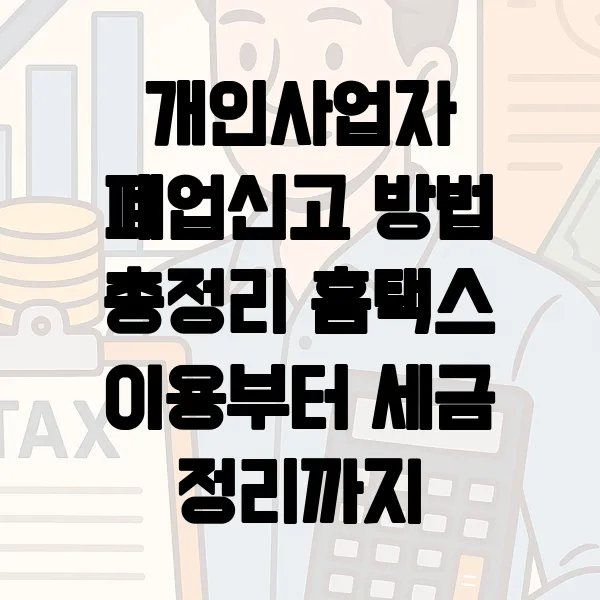 본 포스팅에서는 홈택스를 이용하여 개인 사업자 폐업신고를 하는 구체적인 방법과 폐업 후 유의사항까지 상세히 안내해 드리고자 합니다. 정확한 절차를 숙지하시어 불필요한 문제를 예방하시길 바랍니다.